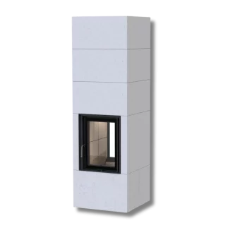 Systemkamin BSO. Kamininsats i gjutjärn i kombination med formdelar av värmebetong möjliggör att snabbt och kostnadseffektivt installara en komplett eldstad. BSO har dessutom en värmeackumulator i form av värmelagrande sten i rökkanalen, helt enkelt en kakelugn i modern tappning. Formdelarna har ett modert uttryck med sin råa betongyta men kan putsas eller målas om man föredrar ett annat utseende.
