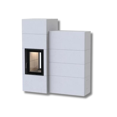 Modern eldstad med klassisk värmelagring