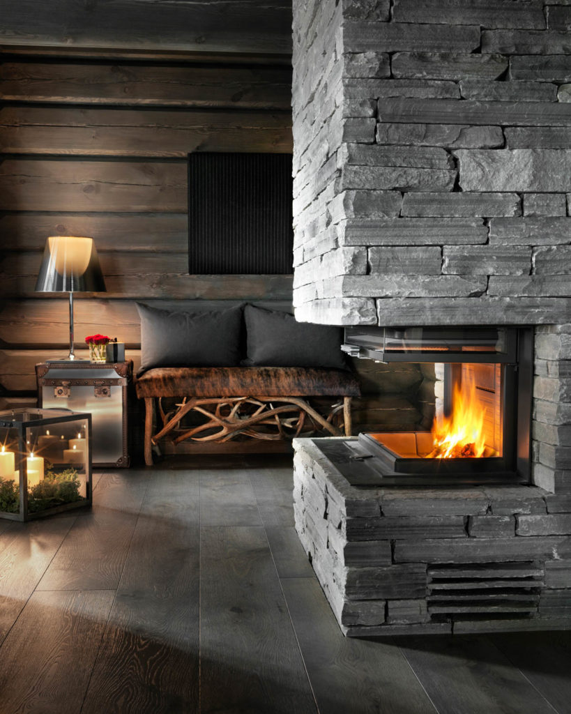 Naturstenen bidrar inte bara med ett exklusivt visuellt uttryck – den har även mycket goda värmelagrande egenskaper. Stenen absorberar värmen från eldstaden och avger den långsamt, vilket ger ett jämnare och mer behagligt inomhusklimat över tid.